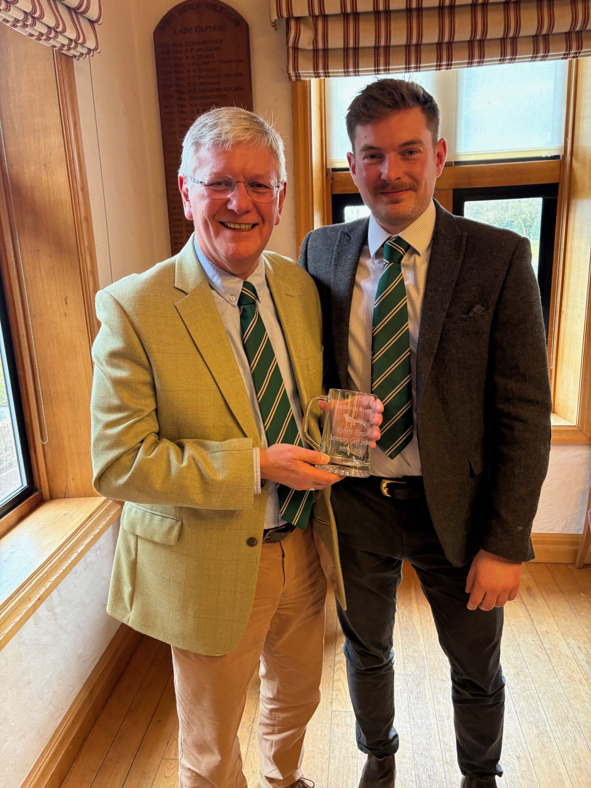 Arthur E.R. Gilligan (1894–1976) was not only a towering figure in Sussex cricket but also a significant presence in Sussex golf. A long‑time member, Captain, and President of West Sussex Golf Club, and a founder member and supporter of the Sussex Martlets, his legacy is celebrated each year through this fixture. The Putter named in his honour symbolises the shared history and fellowship between the two sides. The morning session got off to a competitive start, with West Sussex taking early points in matches 1 and 2. But, much like a resilient middle order steadying an innings, the Martlets’ pairings from match 3 onward found their rhythm. A run of strong wins, highlighted by decisive performances from Stuart Ritchie & Charlie Hartridge, Gary Barnett & Peter Ewen, and Peter Scaramanga & David Tod, shifted the momentum firmly towards the Martlets. A halved match in the seventh and another tight win in the eighth saw the Martlets close out the session with a commanding lead. AM Result: West Sussex2½ – 5½ Sussex Martlets Players then retired to the clubhouse for a superb two‑course lunch, which as is so often the case at West Sussex convivial, relaxed, and of the highest standard. The West Sussex catering team excelled themselves, earning wide appreciation from both sides for the quality and warmth of their hospitality. During the interval, a brief but heartfelt presentation took place. William Forster presented his father Robert Forster with an engraved tankard in recognition of his outstanding service as Hon. Secretary, and in particular for his valuable work compiling and preserving the history of the Martlets. His contribution was warmly acknowledged by all present. Suitably revived from an excellent lunch, the teams returned to the course for the afternoon matches. The Martlets began in memorable style, thanks to a late piece of golfing heroism. With a vacancy arising at the last moment, Ben Burrows stepped in at the eleventh hour, arriving with nothing more than his trusty set of hickories to partner William Forster. Together they dispatched the West Sussex pair, recording a commanding 6&5 victory. It was a performance that set the tone for the afternoon. West Sussex responded strongly with victories in matches 2 and 3, but the Martlets’ lower order, perhaps inspired by the spirited “hickory heroics” at the top of the card, delivered a series of tight wins in matches 4, 5, and 6. Further contributions from Gary Barnett & Bob Mitchell, along with a halved match in the last game, ensured that the afternoon once again went the Martlets’ way. PM Result: West Sussex – 2½ – 5½ – Sussex Martlets Final Result West Sussex 5 – 11 Sussex Martlets A comprehensive and well‑earned victory. Hopefully a sign of a strong season for the golfing martlets in 2026. William Forster – Match Manager |